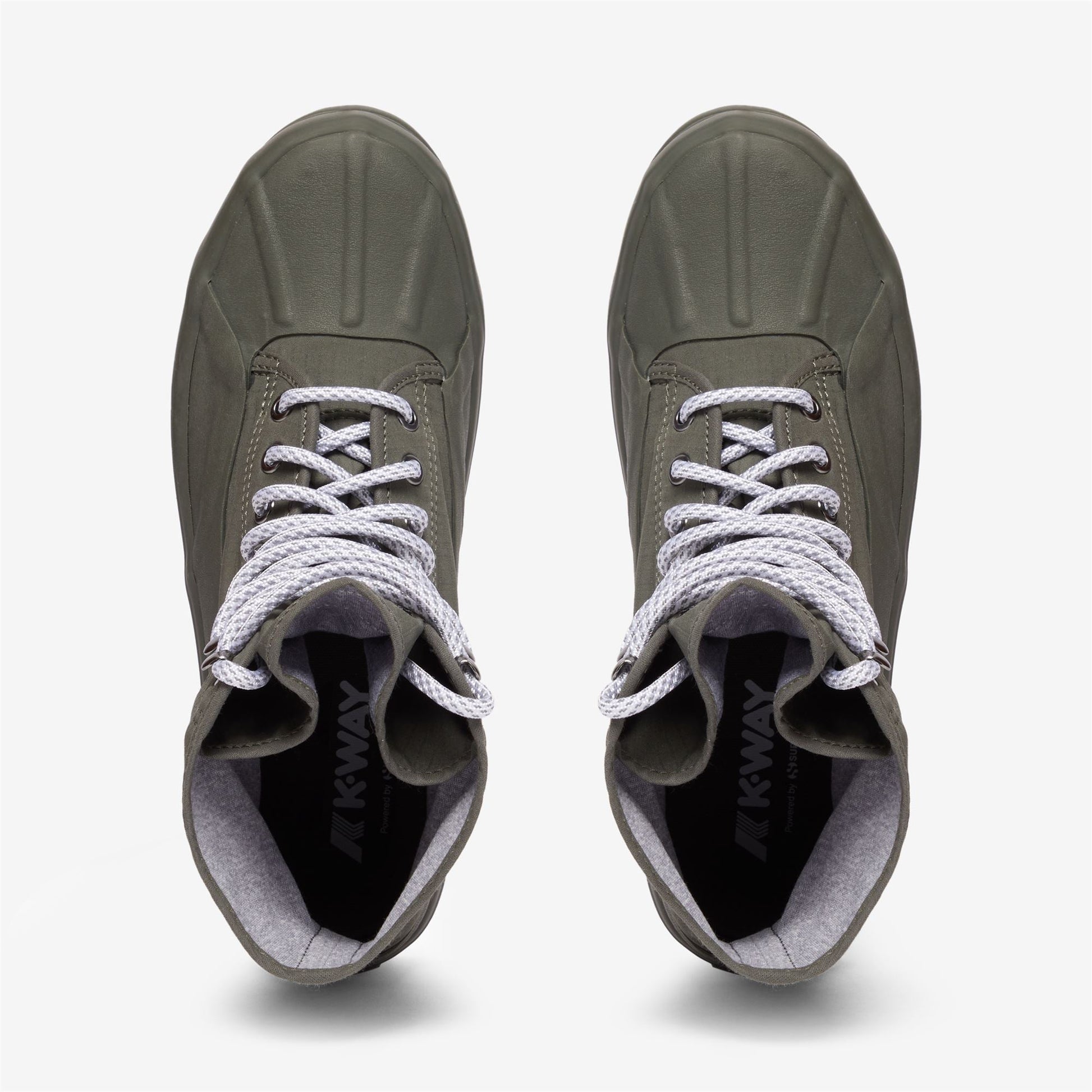 La sneaker Alpina de Superega a marqué l'histoire de la mode avec l'empreinte audacieuse de sa semelle intermédiaire emblématique. Le modèle est né dans les années 1950 et a immédiatement connu un grand succès auprès des amoureux de montagne. Révisée pour K-Way dans la version avec une tige en polyester imperméable et respirante liée au jersey; design montant qui épouse la cheville et soutient le mouvement.