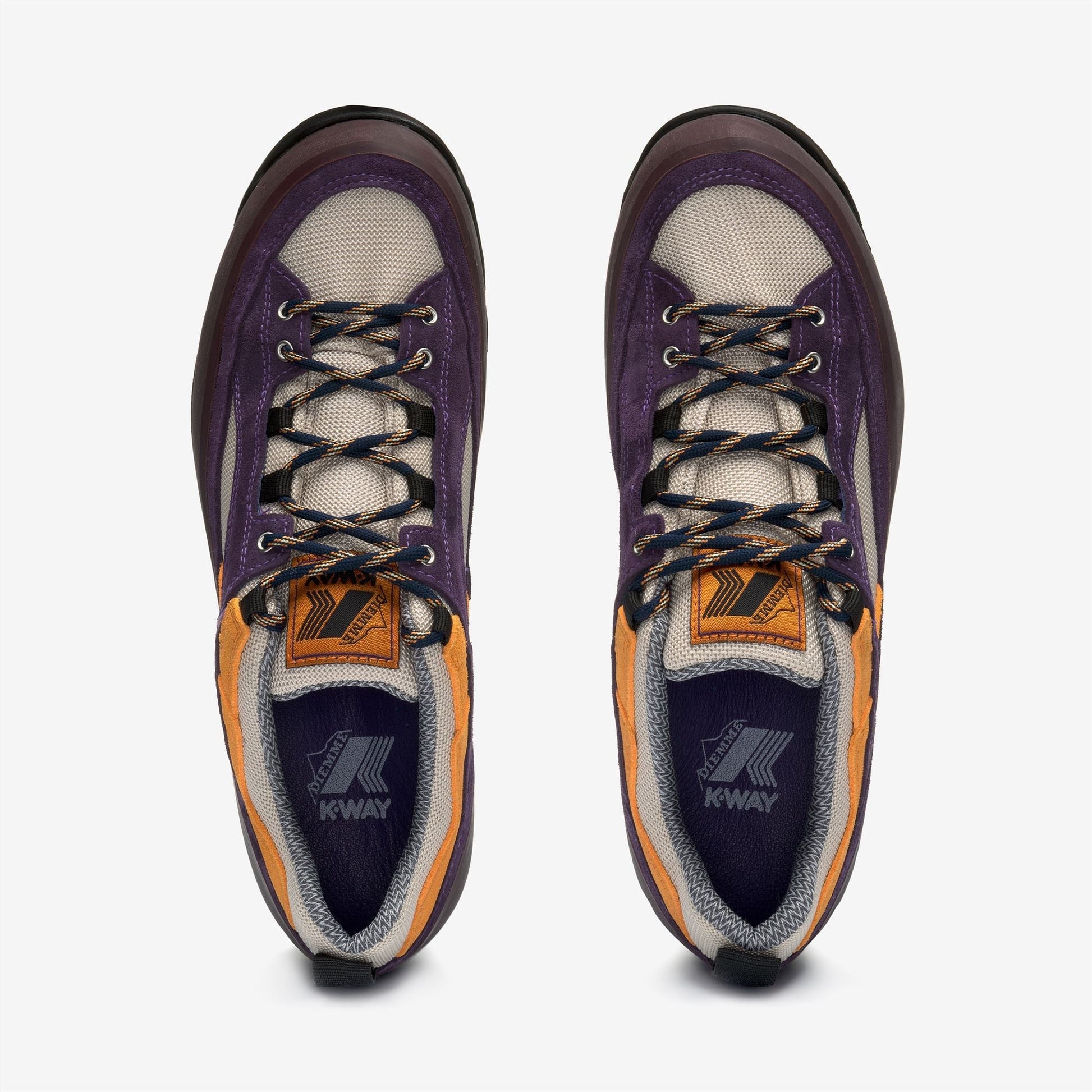La K-Way x Diemme Grappa Hiker s'inspire des chaussures d'alpinisme classiques et est redessinée avec une coupe basse pour une plus grande polyvalence. La doublure en Sympatex garantit une résistance à l'eau, tandis que la semelle Vibram offre un équilibre parfait entre stabilité et traction. Fabriquée en daim de première qualité et en Cordura durable, la Grappa Hiker s'adapte facilement au milieu urbain comme aux sentiers extérieurs. Les couleurs rappellent l'orange et le violet de la ligne de vêtements. Un logo de la collaboration est brodé sur la languette, accompagné de lacets mouchetés en bleu marine et orange.