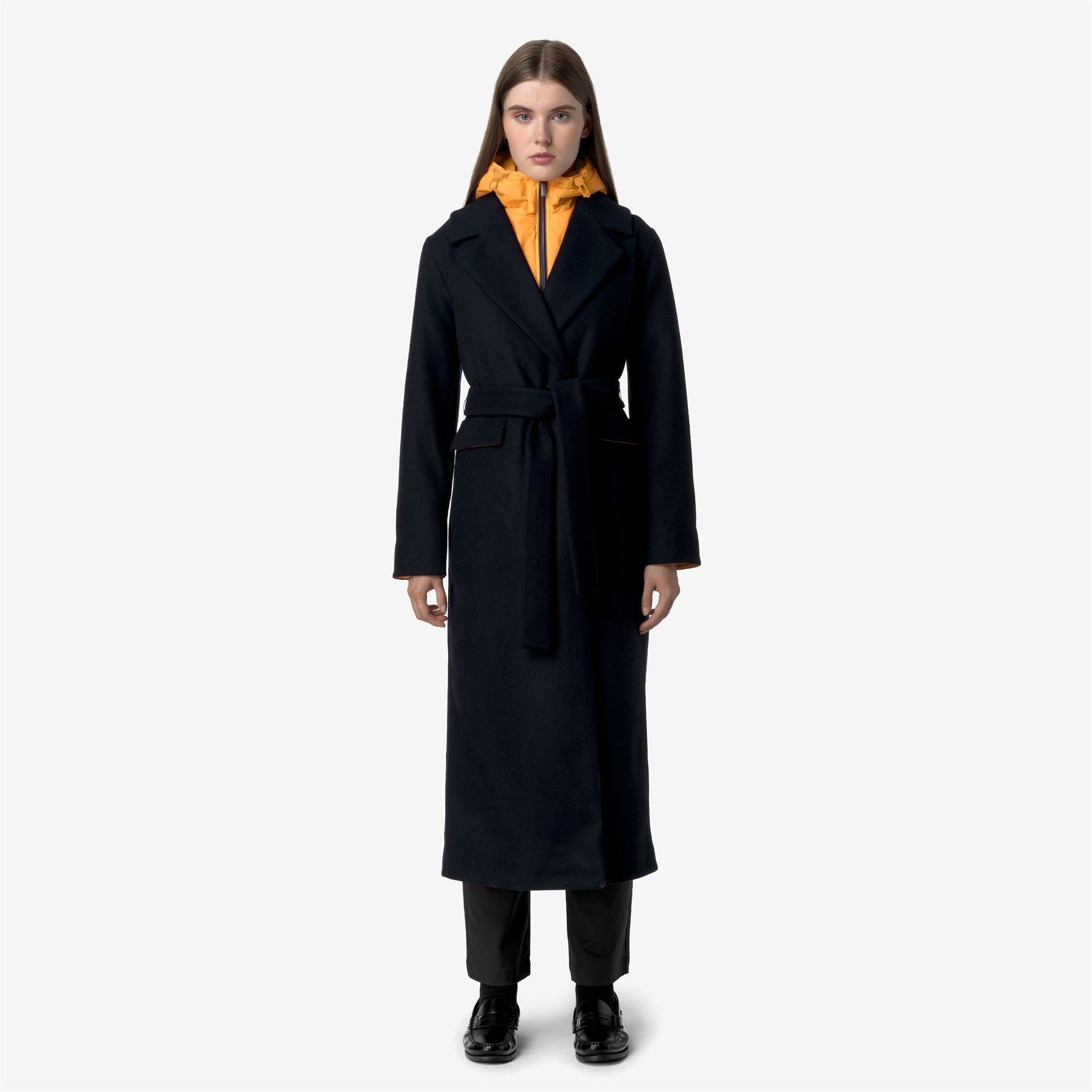 Jorance est un manteau long pour femmes fabriqué à partir de laine certifiée Woolmark. Sa coupe classique avec revers est rehaussée par un look contemporain prêt pour la ville, adapté pour compléter d'innombrables tenues d'automne-hiver de jour comme de nuit. C'est un vêtement d'extérieur élégant et fonctionnel grâce à un gilet en nylon rembourré Le Vrai 3.0 à l'intérieur, amovible selon la météo ou l'occasion et équipé d'une capuche ajustable et d'une fermeture éclair. Le manteau présente une fermeture à trois boutons ton sur ton, une ceinture amovible, des poches extérieures à rabat, une poche intérieure zippée en silicone et une en nylon.