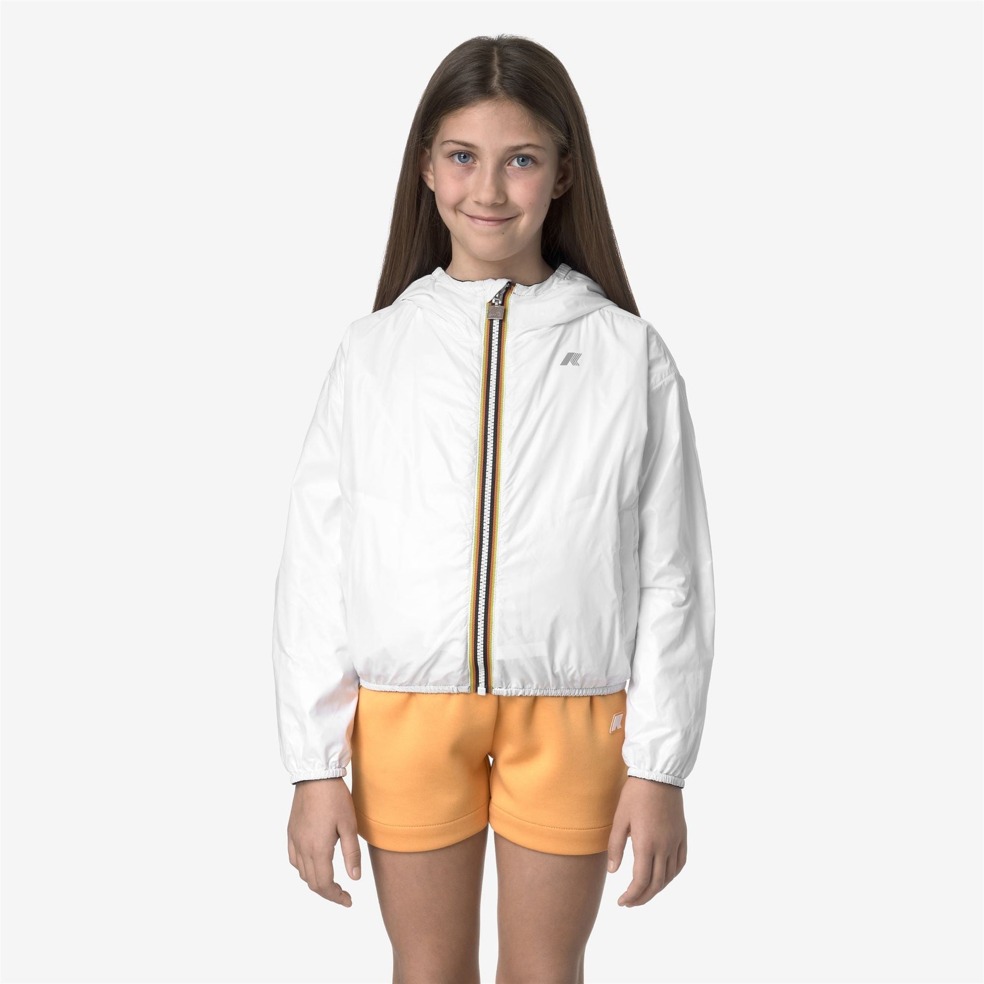 Laurette est une veste courte pour enfants avec un design réversible et pliable : un côté en nylon enduit et un côté en nylon lisse de couleur contrastante. Ce modèle est conçu avec une attention particulière aux détails : les coutures thermocollées et les ourlets élastiqués offrent un ajustement confortable et légèrement ajusté.